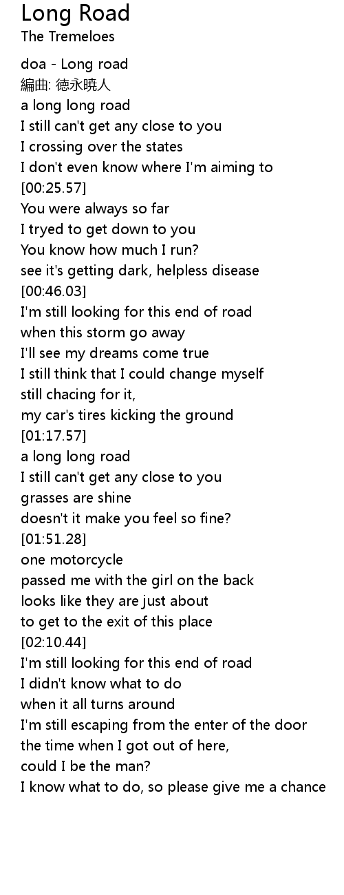 | [00:02.40] | a long long road |