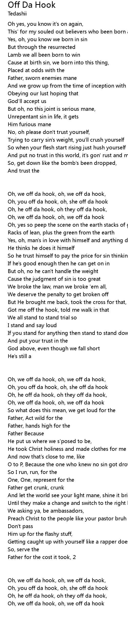 Off da hook, off da hook, off da hook, off da hook [x4] |