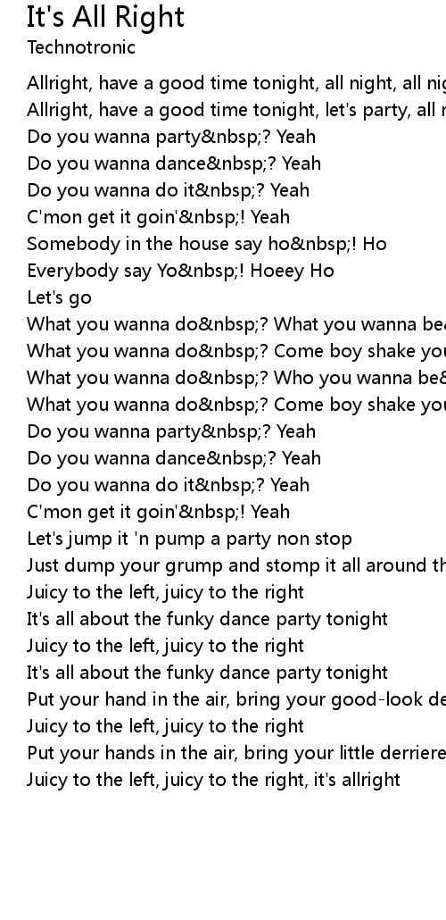 Allright, have a good time tonight, let's party, all night |