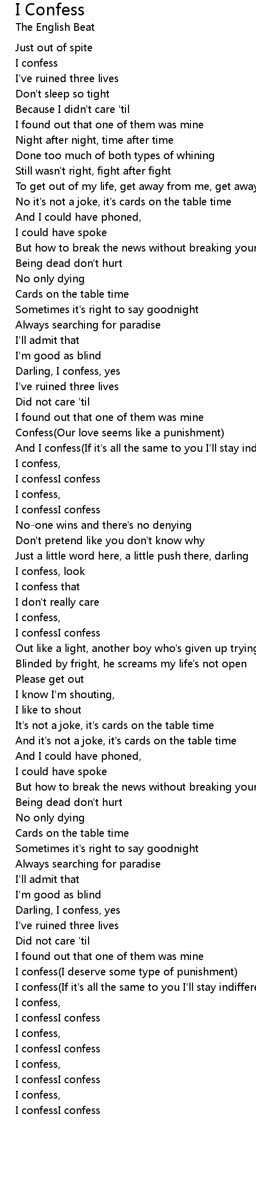 I confess(If it's all the same to you I'll stay indifferent) |