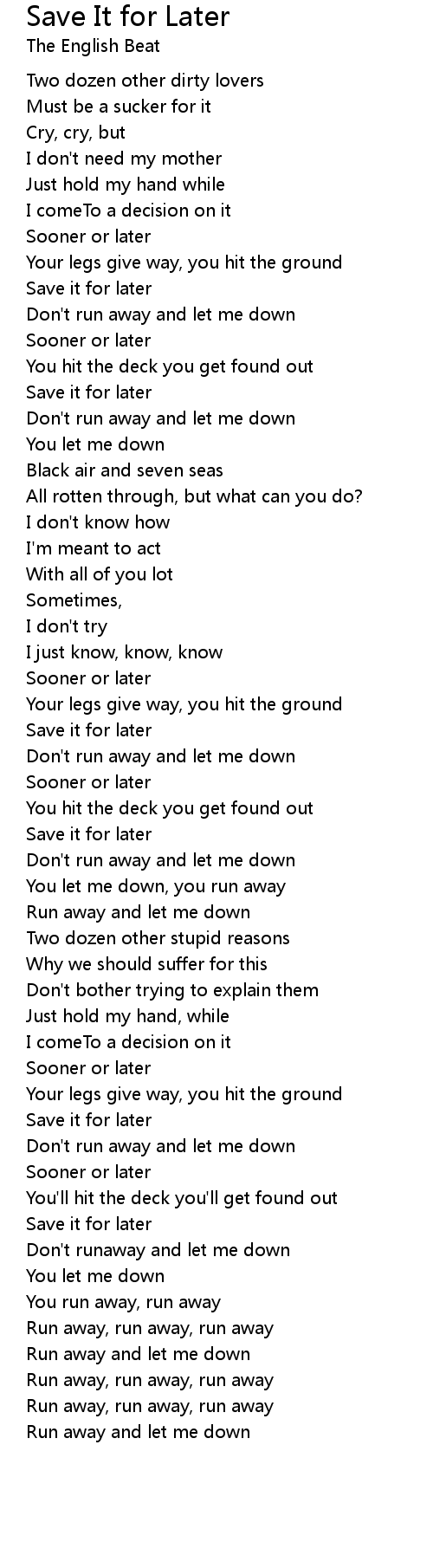 Don't run away and let me down |
