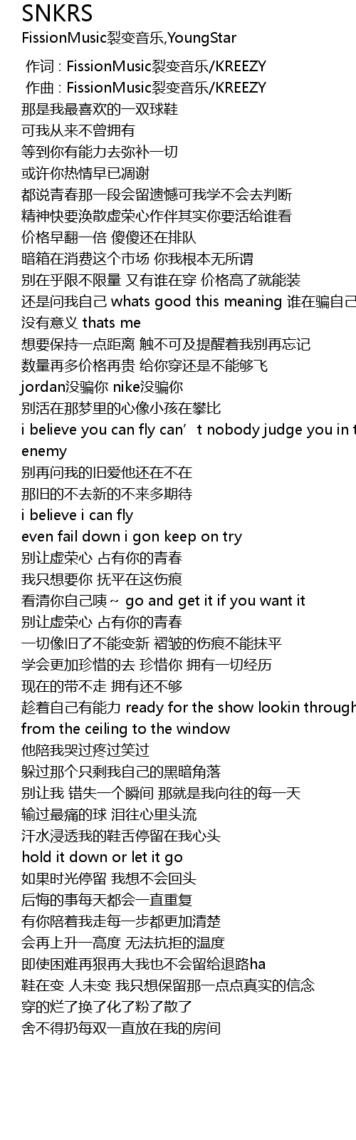 | 歌曲 | SNKRS |