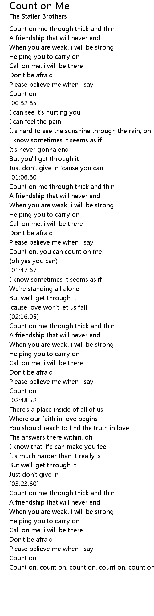 Count on, count on, count on, count on, count on, count on me |