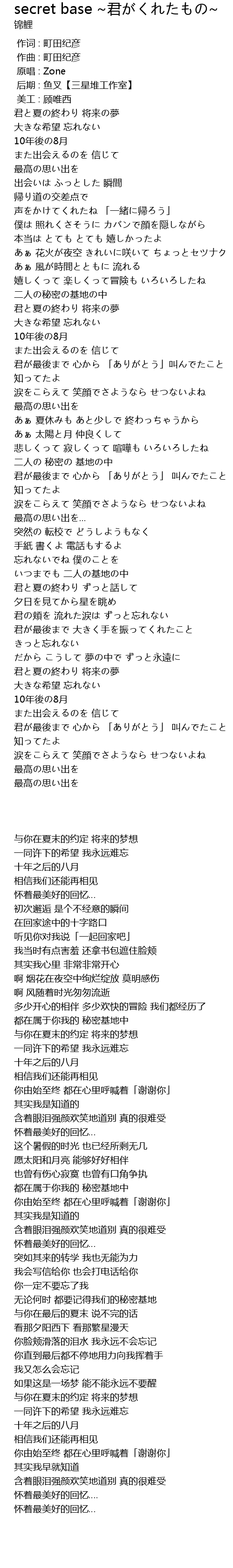| [03:21.66] | 无论何时 都要记得我们的秘密基地 |