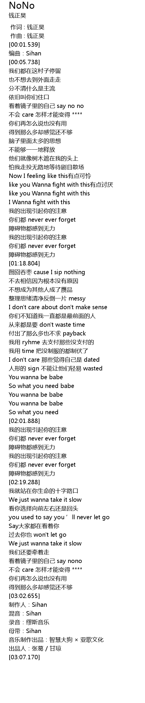 | [03:03.421] | 制作人:Sihan |