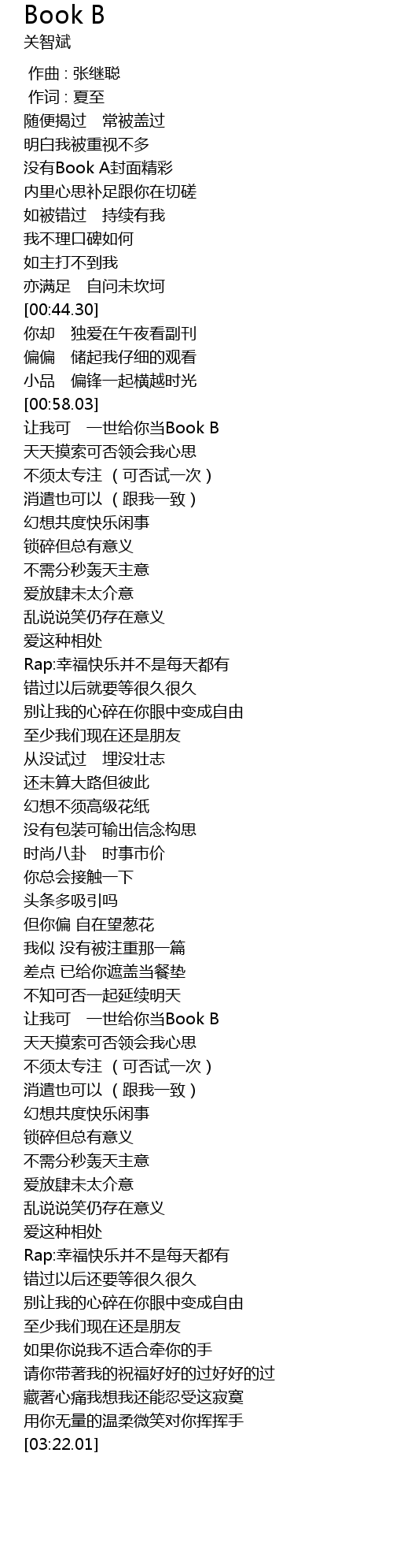 | [00:58.29] | 让我可 一世给你当Book B |