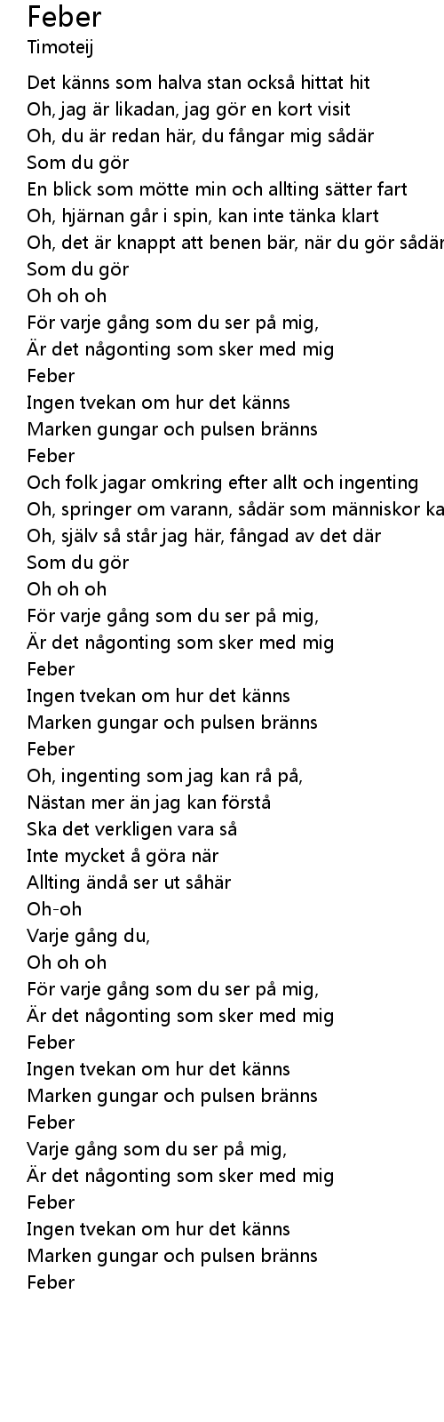 | [00:38.59] | Oh, det r knappt att benen b r, n r du g r s d r |