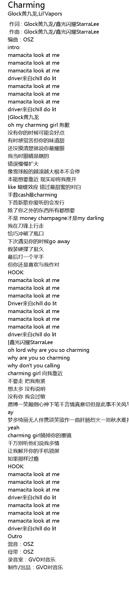 | [00:00.00] | 作词 : Glock黄九龙/鑫光闪耀StarraLee |