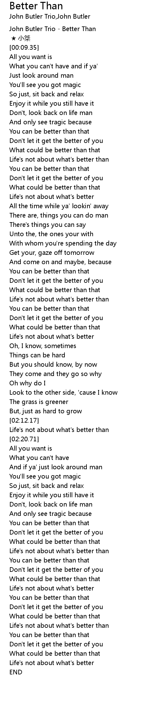 | [00:00.00] | John Butler Trio - Better Than |