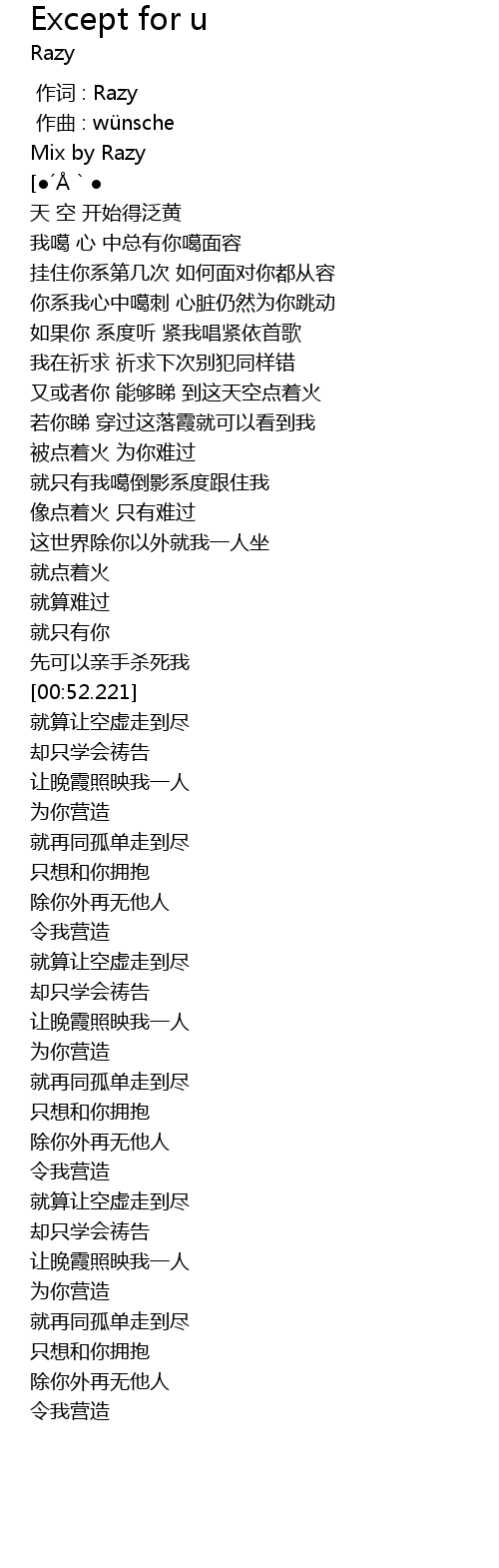 | 歌曲 | Except for u |