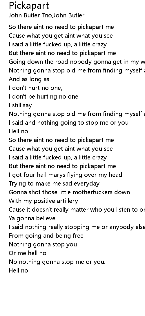 But there aint no need to pickapart me |