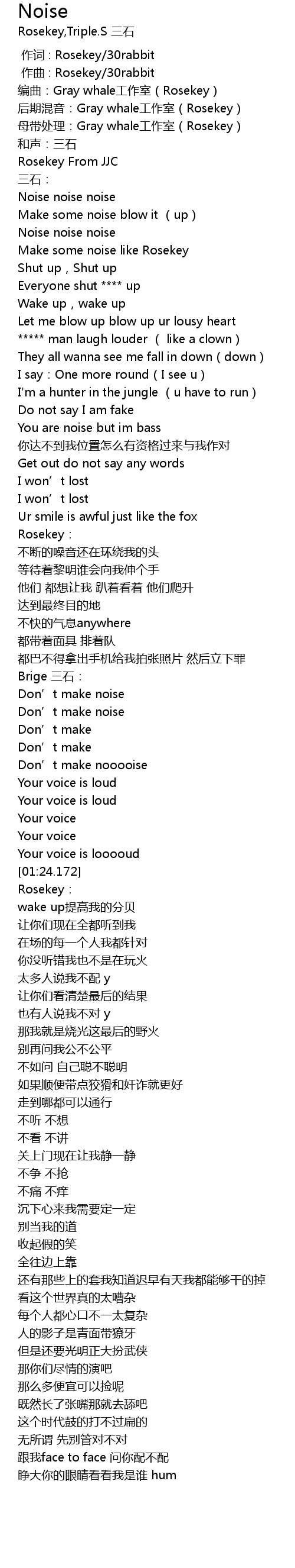 | [00:09.922] | 母带处理:Gray whale工作室(Rosekey) |
