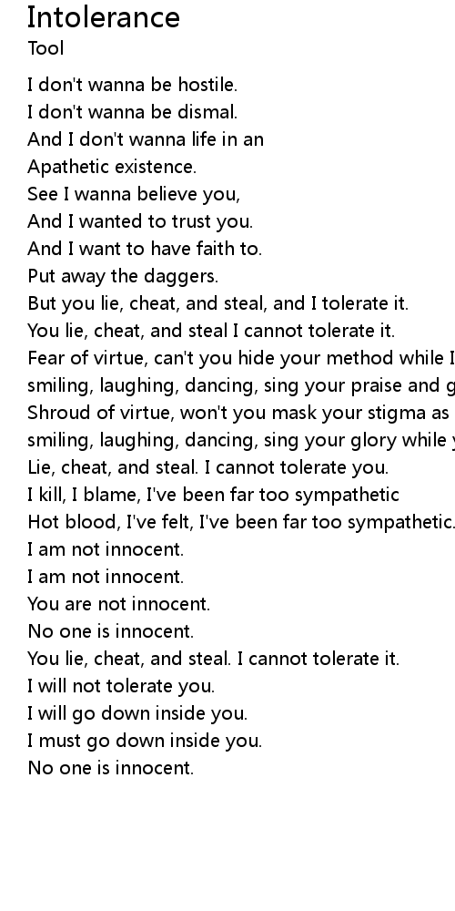| Lie, cheat, and steal. I cannot tolerate you. | |