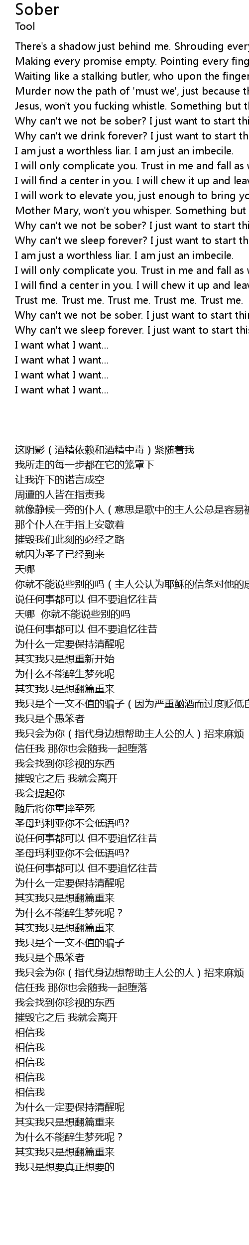 Why can't we not be sober. I just want to start things over. |
