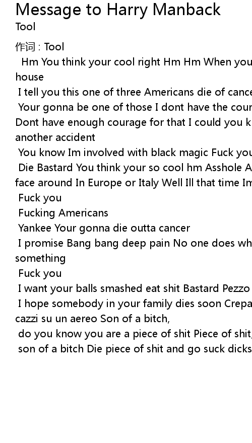 | Die Bastard You think your so cool hm Asshole And if I ever see your fucking face around In Europe or Italy Well Ill that time Im gonna kick your ass | |
