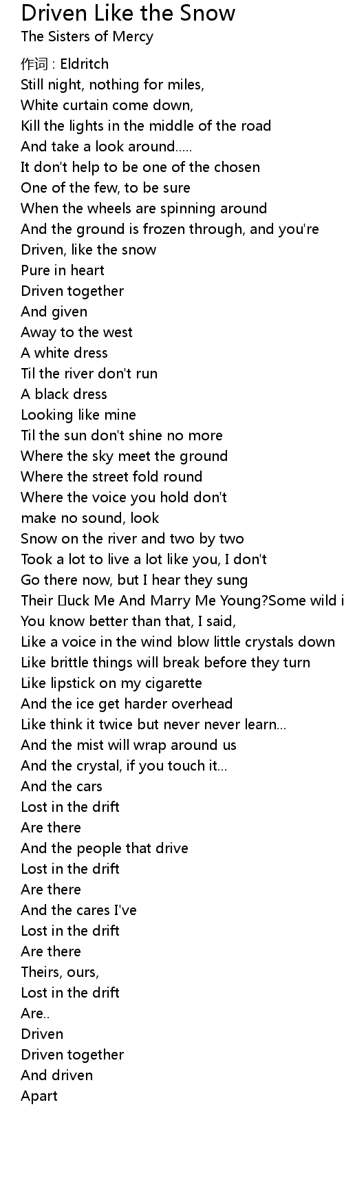 | 歌曲 | Driven Like the Snow |