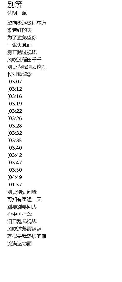 | [01:03] | bie yao wei wo bie qu zhe sha |