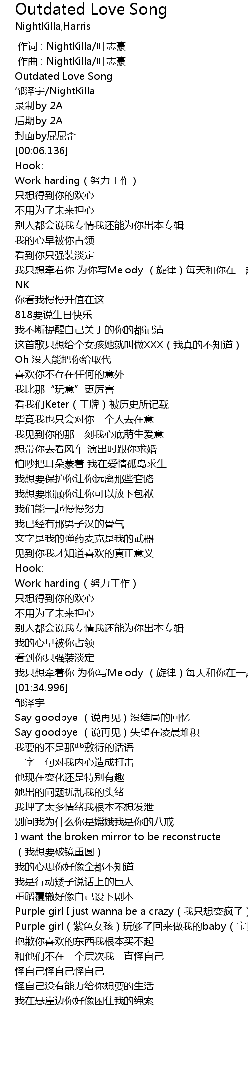 | [00:00.000] | 作词 : NightKilla/叶志豪 |