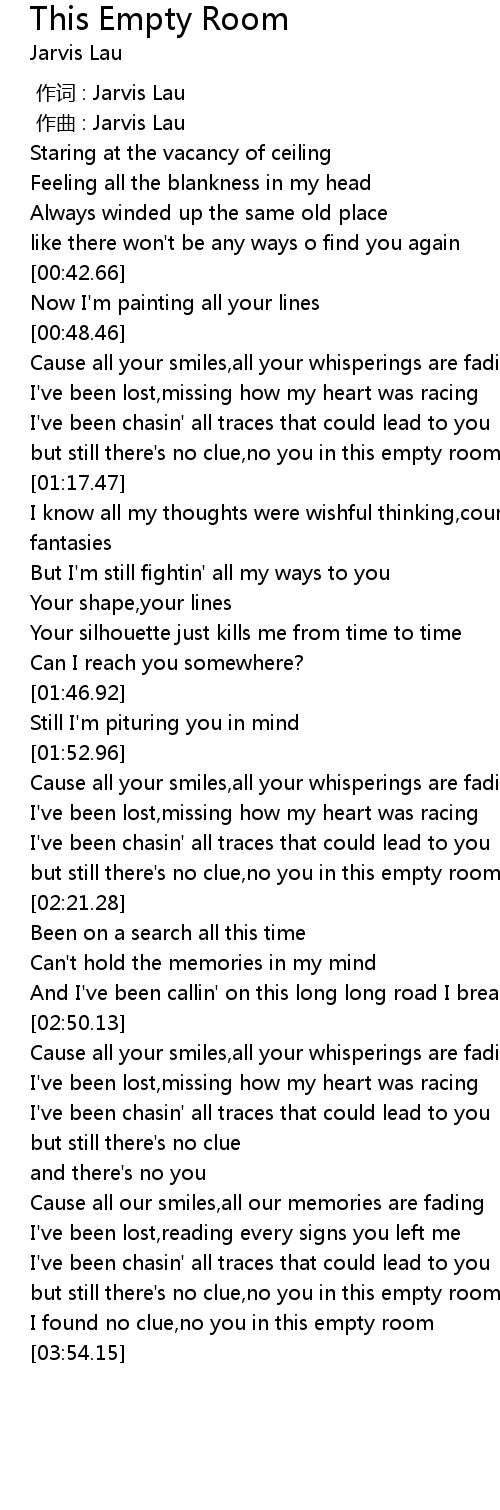 | [03:38.63] | but still there' s no clue, no you in this empty room |
