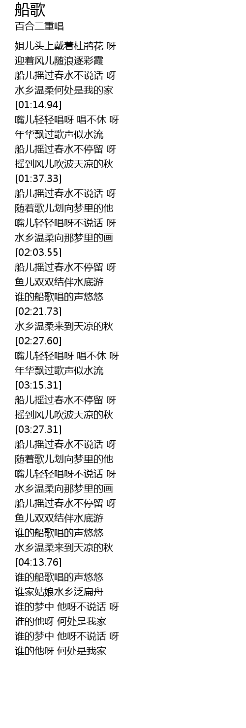 | [04:14.63] | 谁的船歌唱的声悠悠 |