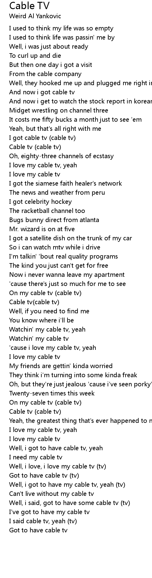 I love my cable tv, yeah |