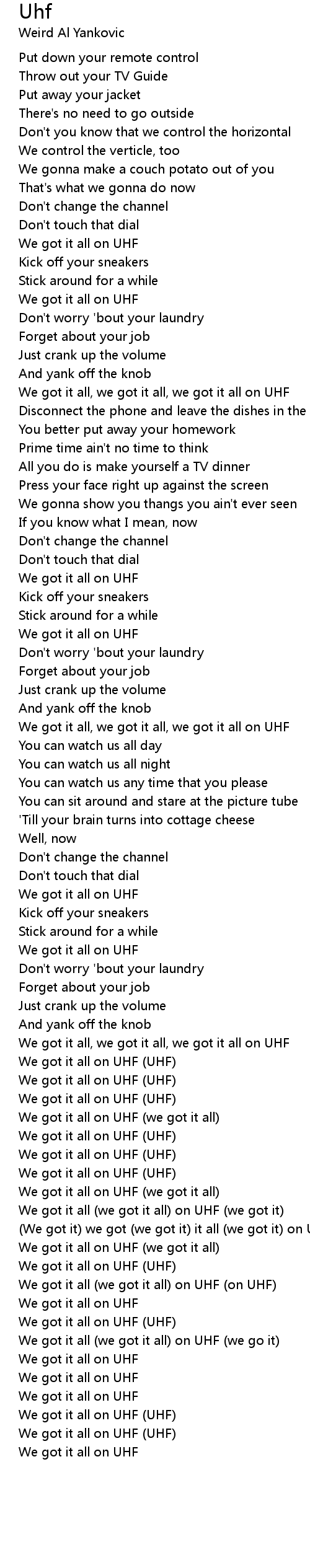 We got it all on UHF (UHF)