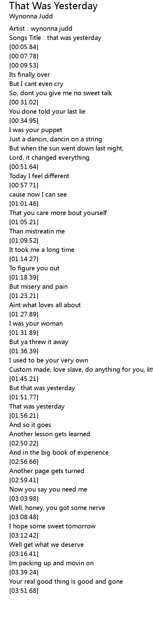 | [00:03.47] | Songs Title: that was yesterday |