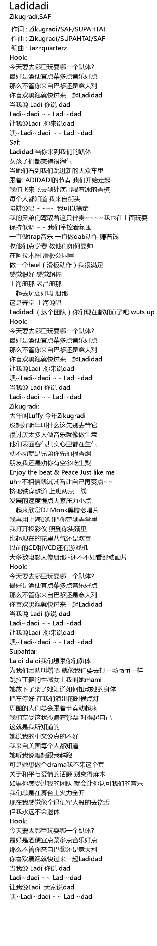 | [04:02.467] | 让我说Ladi ,大家说dadi |