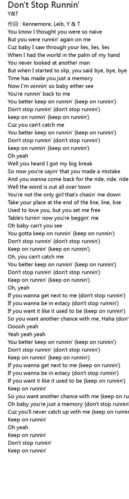 | 歌曲 | Don't Stop Runnin' |