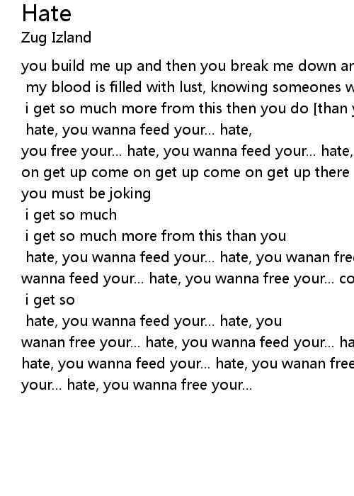 you build me up and then you break me down and bulid me agian, [our emotions weaken] my blood is filled with lust, knowing someones wanting to kill me [we all know someday] i get so much more from this then you do [than you do] i get so much more from this than you [than you] hate, you wanna feed your... hate, you free your... hate, you wanna feed your... hate, you wanna feed your... come on get up come on get up come on get up there must be some way i can better my health to save me, [from all the bad things that feel so good]you must be joking you dont even know a thing about it [it was what you understood] i get so much more from this then you do [than you do] i get so much more from this than you [than you] hate, you wanna feed your... hate, you wanan free your... hate, you wanna feed your... hate, you wanna free your... come on get up come on get up come on get up i get so much more from this then you do [than you do] i get so much more from this than you [than you] hate, you wanna feed your... hate, you wanan free your... hate, you wanna feed your... hate, you wanna feed your... hate, you wanna feed your... hate, you wanan free your... hate, you wanna feed your... hate, you wanna free your... |