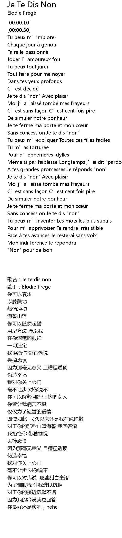 | [00:50.00] | Je te dis " non" Avec plaisir |