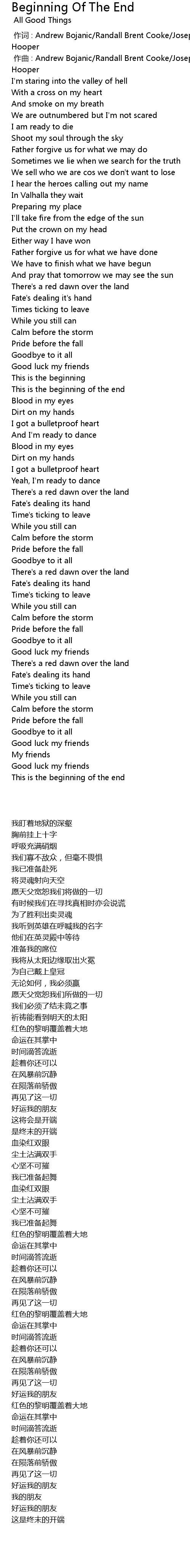 | [00:00.000] | 作词 : Andrew Bojanic/Randall Brent Cooke/Joseph Pringle/Elizabeth Hooper |