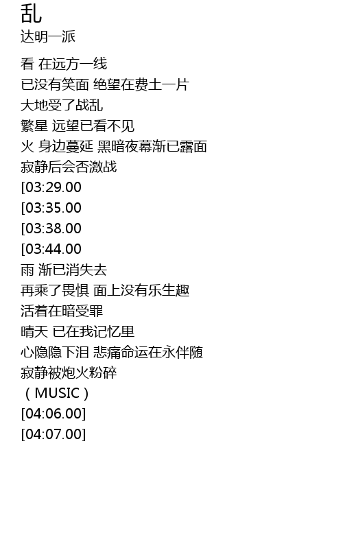| [03:56.00][03:38.00][03:19.00][01:48.00] | 战火中难复再 |