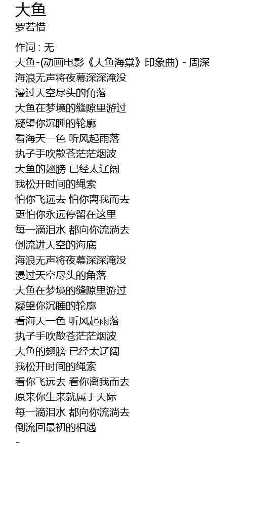 | 大鱼-(动画电影《大鱼海棠》印象曲) - 周深 | |