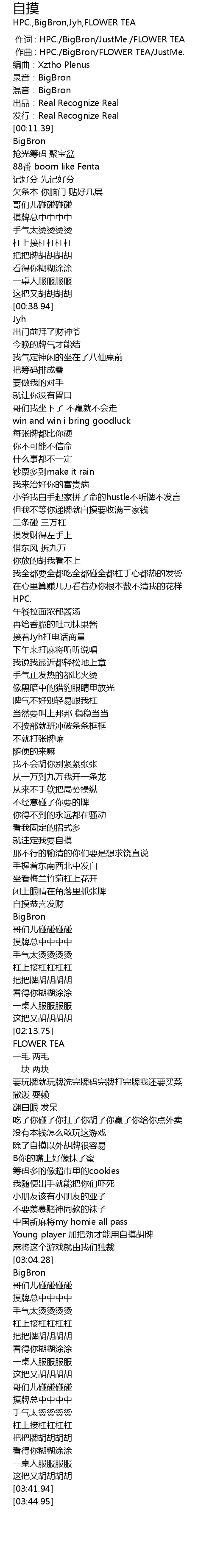 | [00:00.00] | 作词 : HPC./BigBron/JustMe./FLOWER TEA |