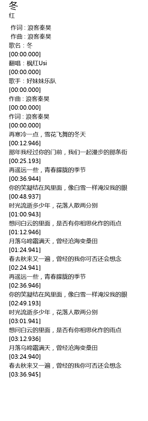 | [00:00.000] | 作曲 : 浪客秦昊 |