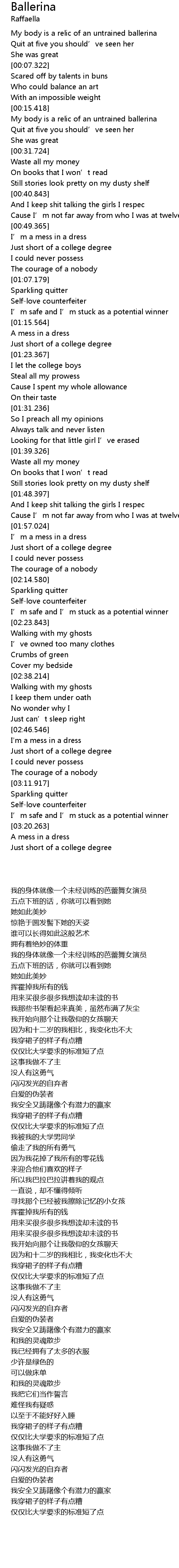 | [00:00.174] | My body is a relic of an untrained ballerina |
