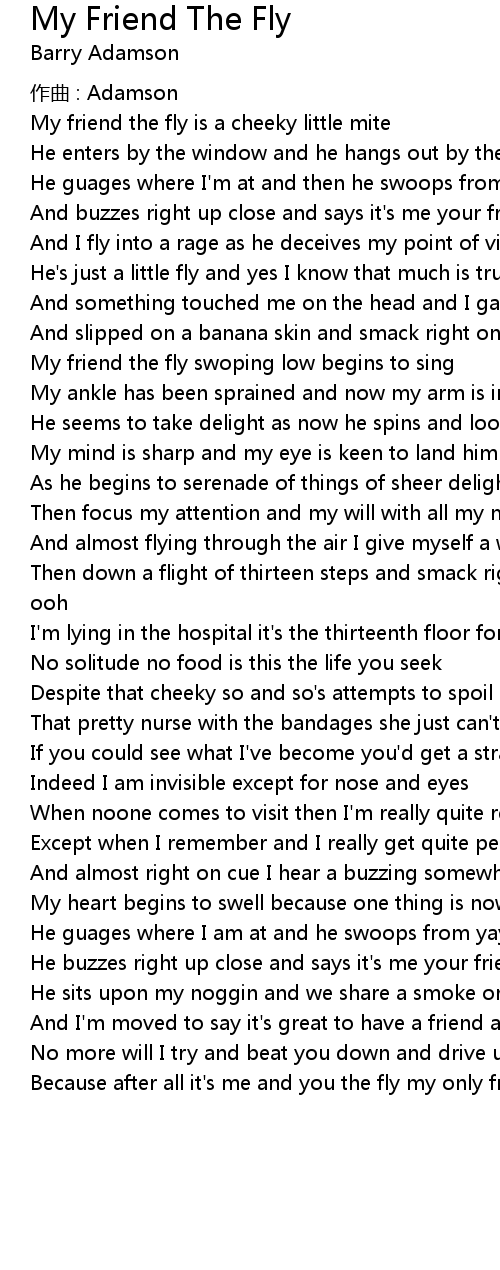 | I'm lying in the hospital it's the thirteenth floor for me | |