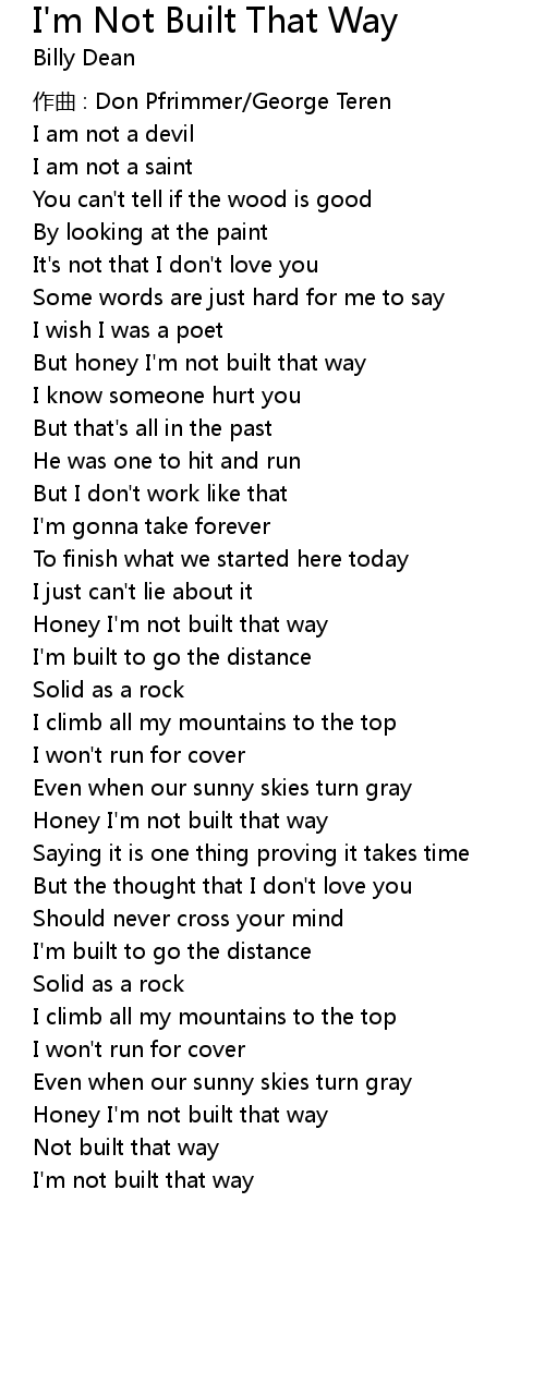 | 歌曲 | I'm Not Built That Way |