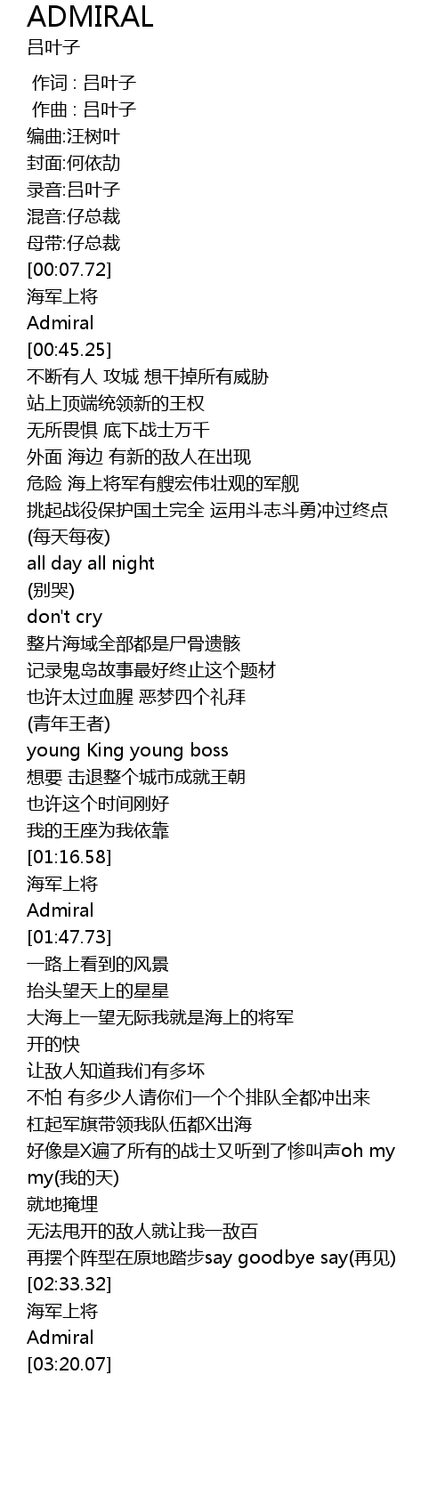 | [02:33.52] | 海军上将 |