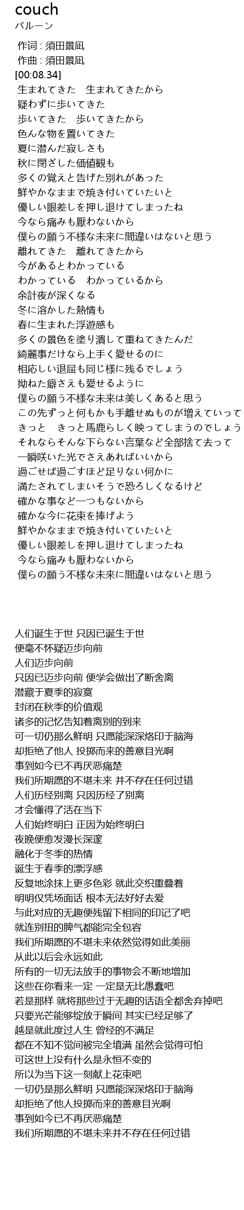 | [00:13.24] | 生まれてきた 生まれてきたから |