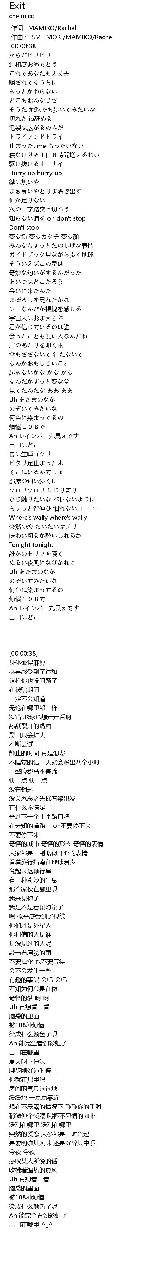 | [00:00.00] | zuo ci : MAMIKO Rachel |
