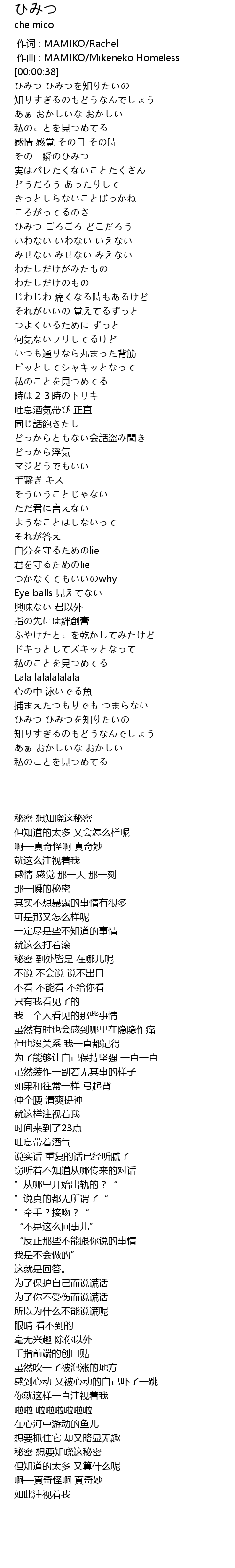 | [00:00.00] | zuò cí : MAMIKO Rachel |