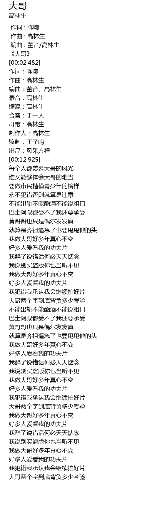 | [00:01.253] | 《大哥》 |