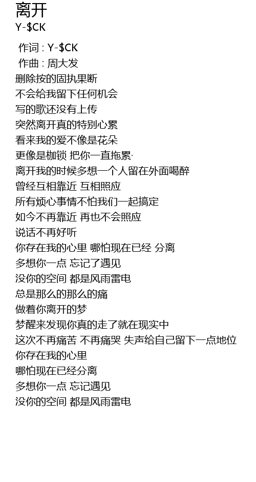 | [00:00.000] | 作词 : Y-$CK |