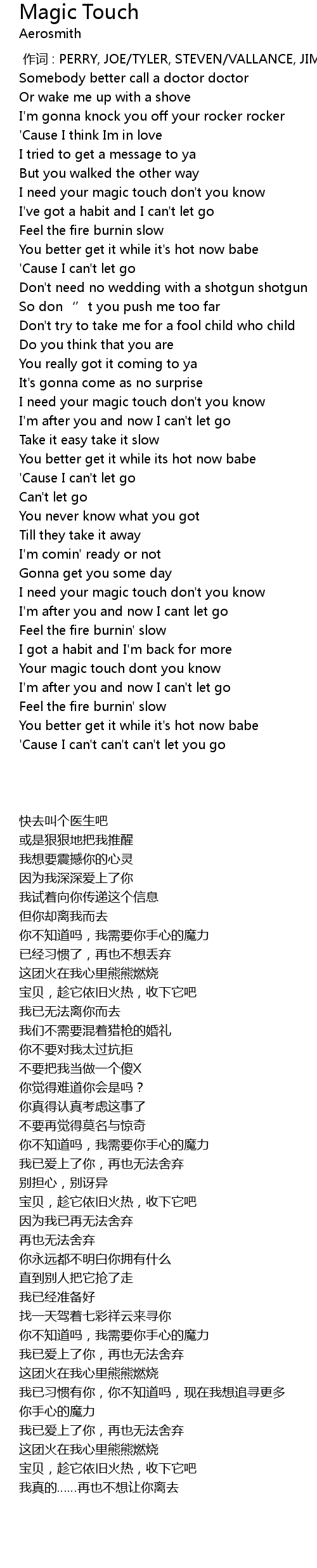 | [00:00.00] | 作词 : PERRY, JOE/TYLER, STEVEN/VALLANCE, JIM |