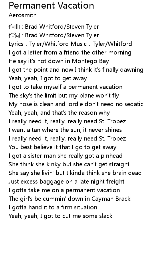 | 歌曲 | Permanent Vacation |