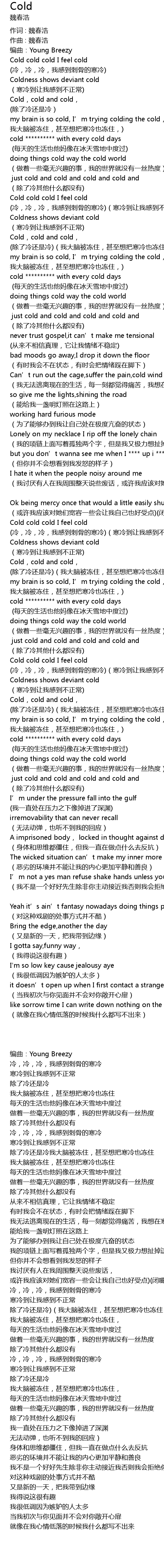 | leng, leng, leng, wo gan dao ci gu de han leng han leng dao rang wo gan dao bu zheng chang | |