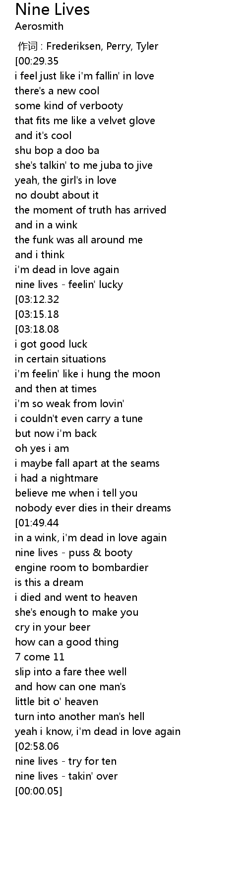 | [03:32.35][02:58.06] | nine lives hello lucky |