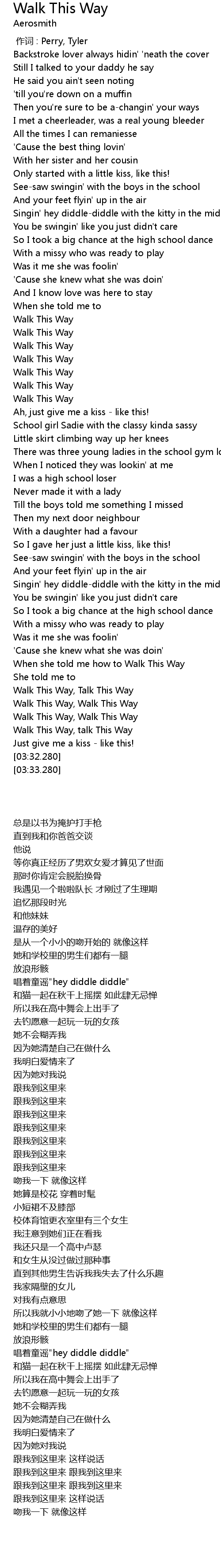 | [02:32.360] | Walk This Way, talk This Way |